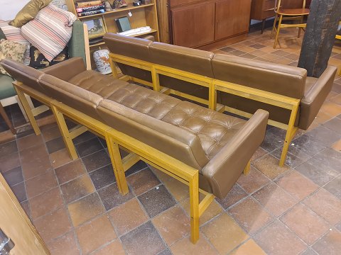 Par 3 personers sofaer i eg og læder designet af Ole Gjerlev Knudsen Moduline model. Fremstillet i 1970'erne. Fremstår står pæne og ok velholdte dog med lidt overfladiske brugsspor på den ene og mindre hul i sæde på den anden. (Billeder)