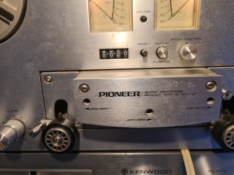 Spolebåndoptager fra Pioneer model RT-707. Sælges til reperation eller reservedele. Tænder fint op, men play funktion går i stå nærmest med det samme når der er spoler på. Kører lidt længere uden spoler på. Spolefunktionerne kører ligeledes lidt længere inden de stopper.