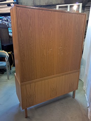 2 delt reolsektinon i fineret egetræ med jalousilåge, fra 1980erne.