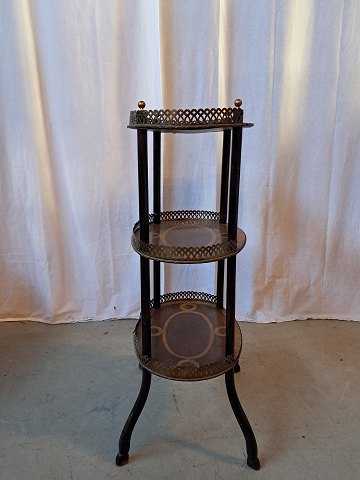 Sidebord i fineret mahogni og nødetræ med metalkant, fra 1980erne.