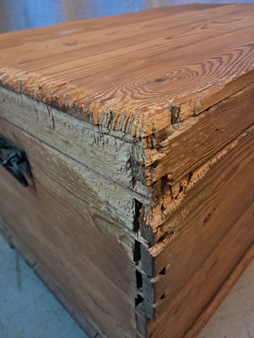Kiste i massivt fyrretræ, fra 1910erne.