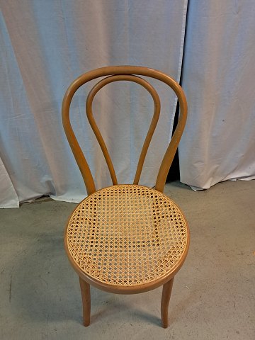 Stol i massivt bøgetræ med sæde i rørflet, fra 1990erne.