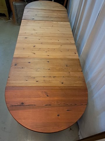 Spisebord i massivt fyrretræ med klapper og 2 tillægsplader, fra 1980erne.