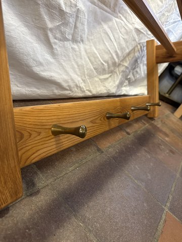Svensk design væghængt knagerække/hattehylde i massiv fyr og knager i messing.