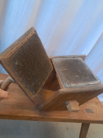 Bænk til uldkarding i massivt fyrretræ, fra 1910erne.