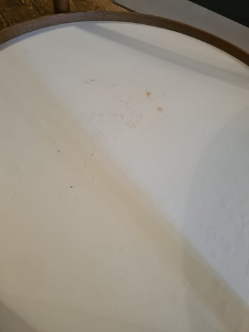 Bakkebord designet af Hans Bølling. Her i eg og formica. Fremstår pænt og funktionsdygtigt med enkelte brugsspor på den hvide formica.(Billeder)